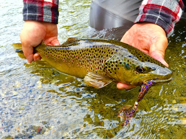 This stream still was high and off color from runoff, so we decided to head down to Warm river and continue chucking streamers. We had so,so results and landed a few smaller trout. Just prior to calling it quits, I landed a beautiful brown. Not the biggest, but definitely a good fish for warm river also.